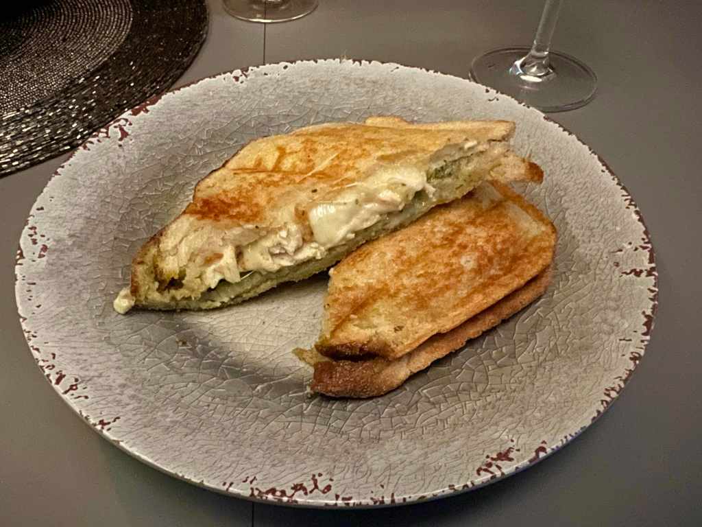 Det är alltid lika svårt att planera maten inför helgen. Det blev toast med kyckling som jag sousvidat hemma, pesto, mozarellaost och tomat – blev supergott!!