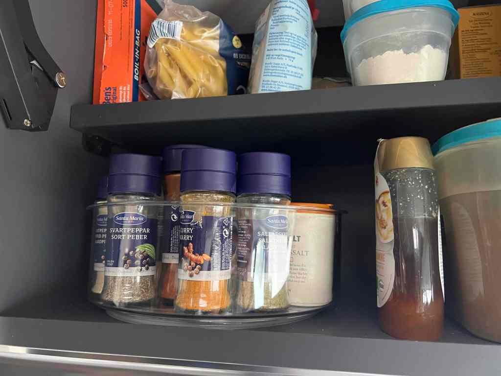 Kryddställ som går att snurra!! Slut på ut och in med de otympliga korgarna jag hade tidigare. Länk var vi köpt dem finns så klart bland ”våra bästa prylar”