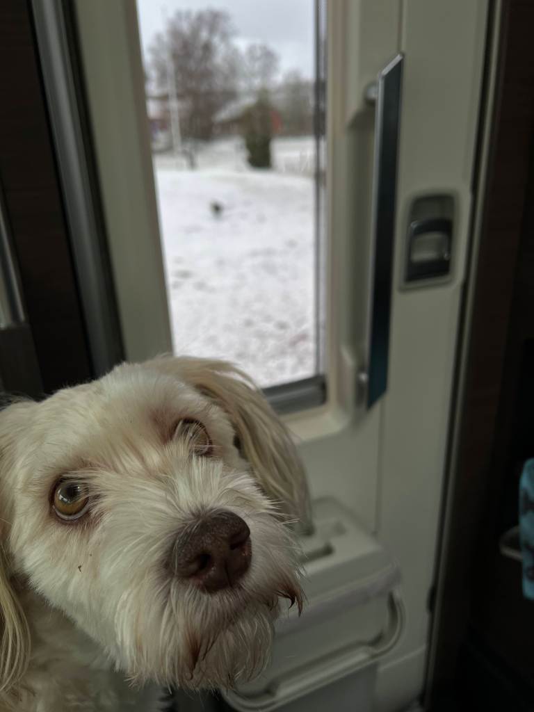 På morgonen vaknade vi upp till snö! Inte riktigt vad man önskar sig nu….