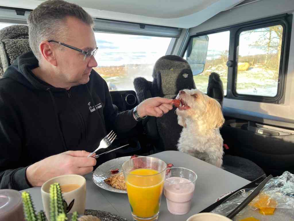 Bingo e också stärkt av frukosten 🤣 vår lille goe tiggare 🥰