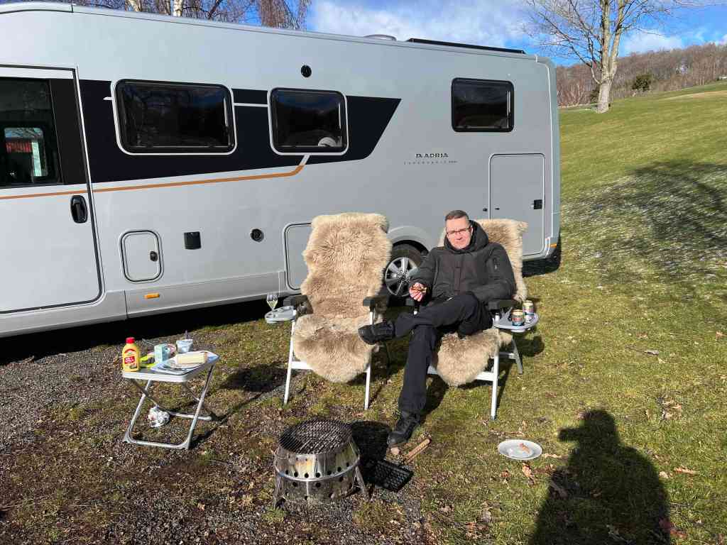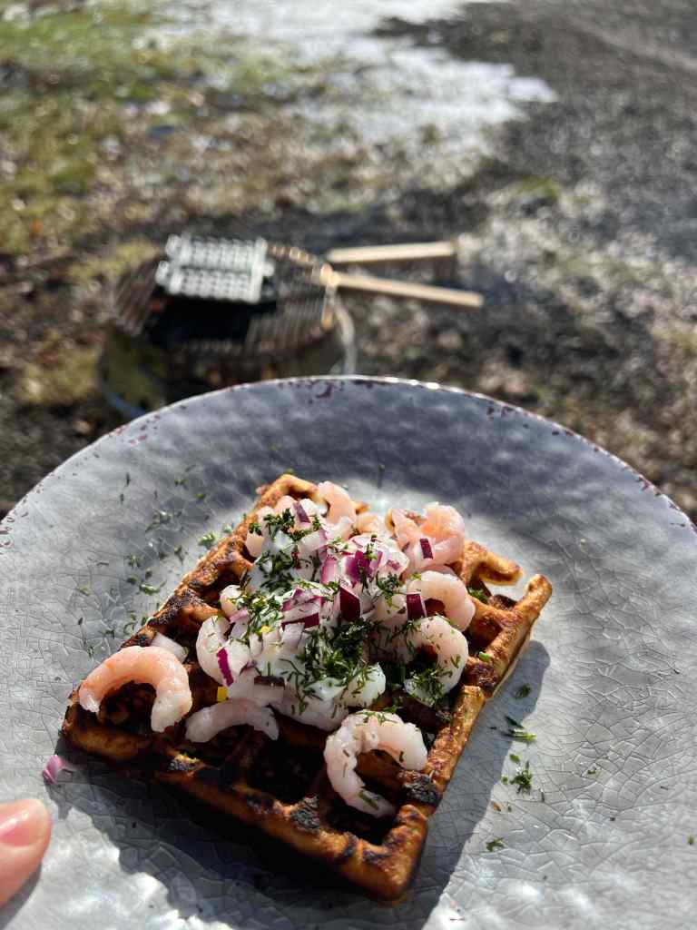 Tillbaka vid husbilen brassade vi igång Petromaxen för nu skulle det bli lunch – utelunch med våfflor!!! 🤩