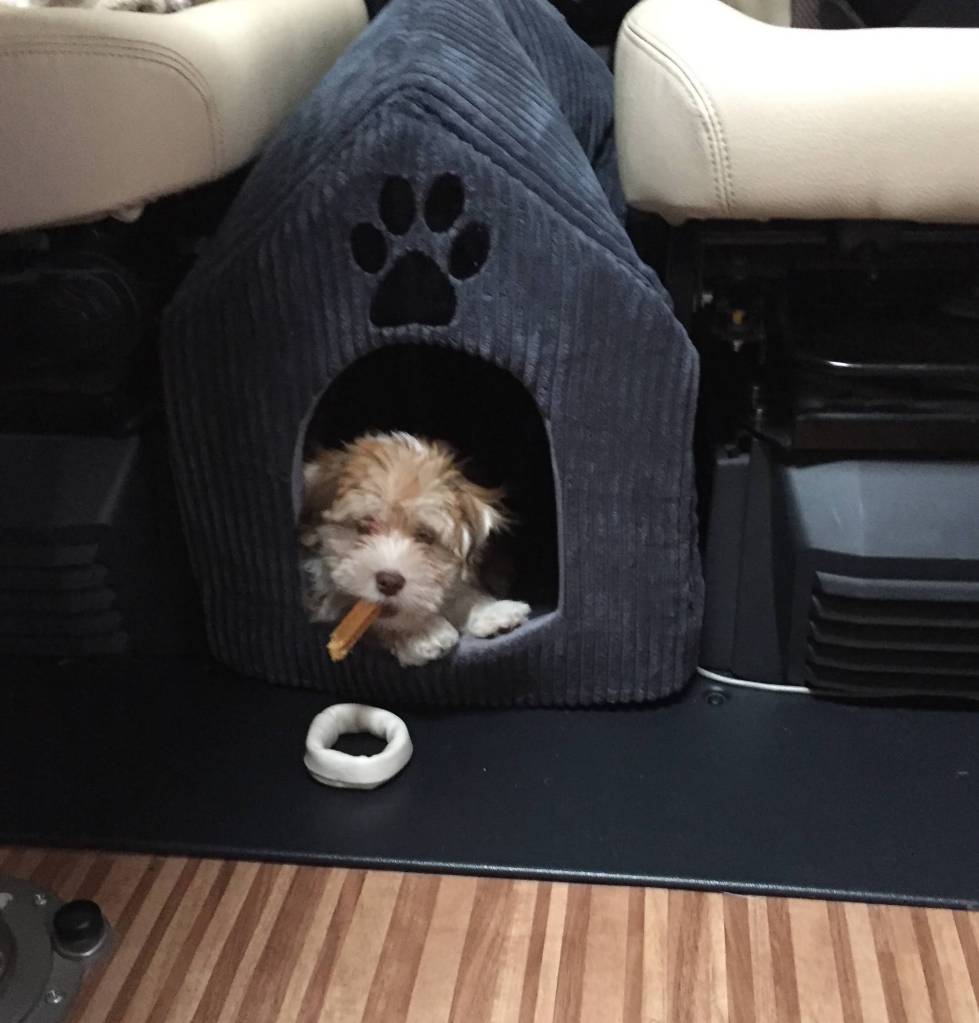 Vi hämtade hem honom i slutet av augusti 2018 och redan efter en vecka hemma tog vi han på den första turen med husabilen