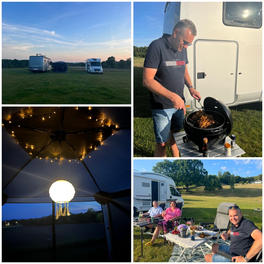 Framme på Jälluntofta camping var redan Mickes bror med familj och lite senare kom även våra Kroatienföljeslagare Roger och Lena.