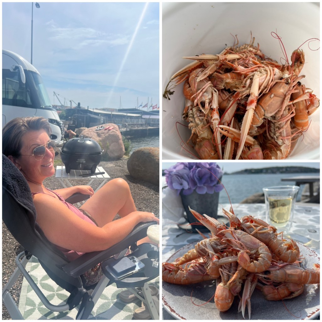 På eftermiddagen kom ett par killar förbi på ställplatsen och undrade om vi ville beställa nykokta kräftor som sedan skulle levererades till husbilen på eftermiddagen – OM vi ville?!?!? 🤤