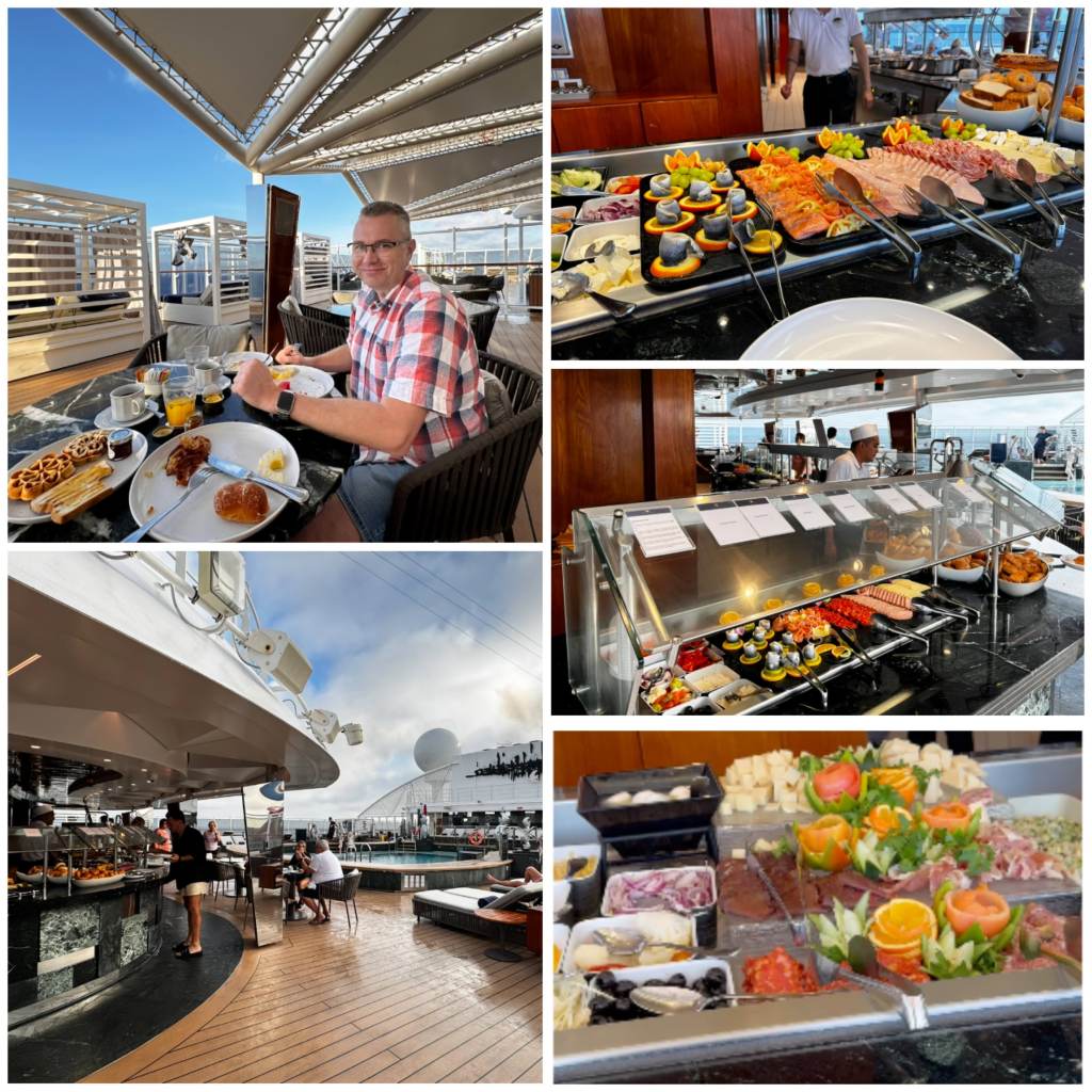 I Yacht club kunde man äta antingen på pooldäck eller i restaurangen. Eftersom vi gillar att ta lite av varje, blev det det första – dessutom ville vi ju sitta ute i värmen.
