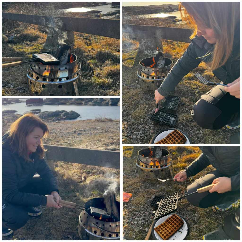 Tillbaka igen vid husbilen tände vi Petromaxen för att brassa till lite våfflor och så klart var vi tvungna att öppna en flaska bubbel för att fira denna helt fantastiska dag!