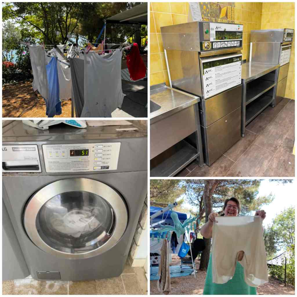 Häromdagen testade jag tvättmaskinerna, eftersom det är en liten camping var där ingen kö – till och med två lediga!!! 🤩 I diskrummet finns även diskmaskiner!!! Det har jag aldrig sett här nere tidigare! Micke testade den igår 👌🏻.