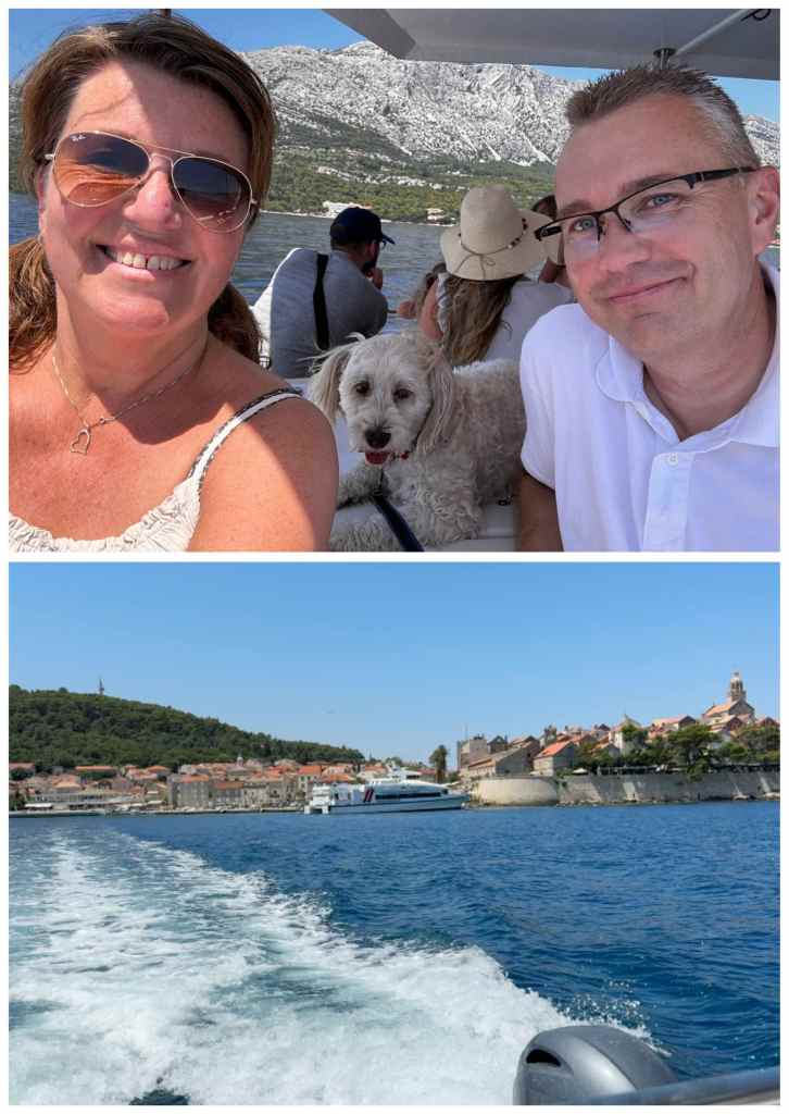 I måndags då det fortfarande var förhållandevis svalt (bara 32 grader på dagen) tog vi båten, som går varje dag från campingen, till ön och staden Korcula.