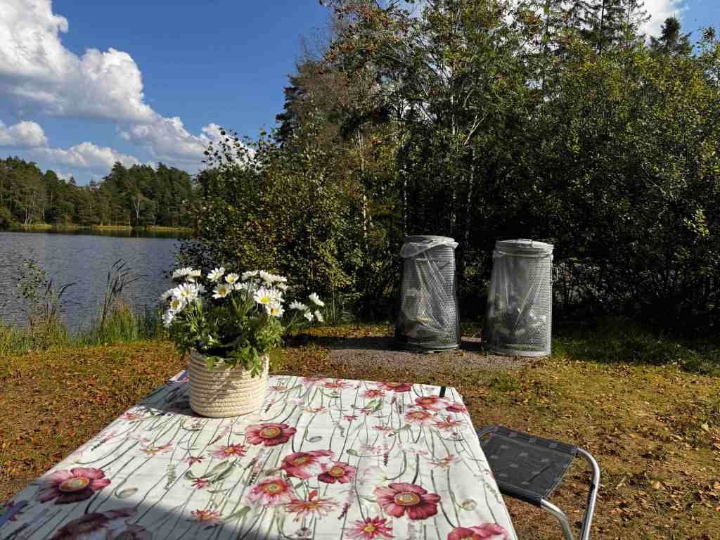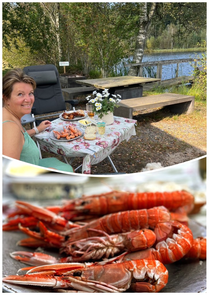 På kvällen tog vi fram tältet och satte oss och njöt, eller nja njöt och njöt…. det kom en traktor som höll på med något längs vägen som gick en bit bort. Den stod och brummade en si så där 30 minuter, sen var det en strid ström med bilar under hela dagen – Gekås drar folk från alla håll 🙈, så när vi tänker på Eremit plats, så kanske vi tänkt oss att ha det lite mer eremitiskt, men visst var det en fantastiskt fin plats och inte alls omöjligt att vi kommer återvända dit!