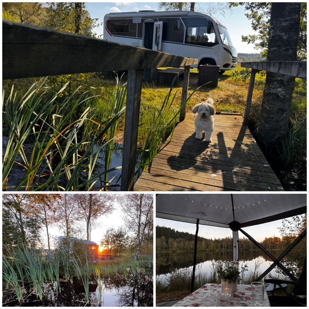 Dagen därpå hade vi hittat en liten ställplats i Karl-Gustav trakten i en app och for dit. Wow vilken idyll!!! 🤩 Helt grymt och helt grymt besvikna blev vi när vi läste att det låg en älgskjutbana precis bredvid, och att det var träning varje lördag mellan kl 13-16!!! 😞