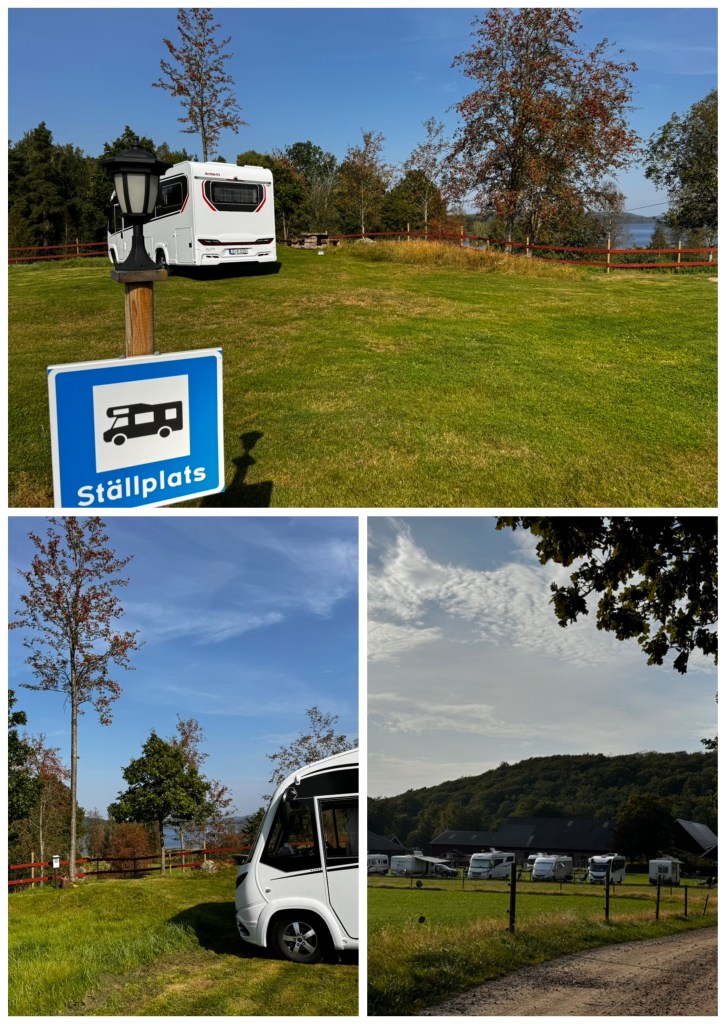 Fanns inte en chans att vi skulle stanna kvar! Lite tråkigt att de inte skrivit det på deras hemsida. Läste man bland kommentarerna i ställplatsappen hittade man detta om man skrollat ner lite men det hade vi inte gjort…. Någon hade kommenterat detta att de precis som vi, också hade blivit besvikna. Ställplatsägarna hade då svarat med att ”detta var ett naturligt inslag på vår svenska landsbygd”.
