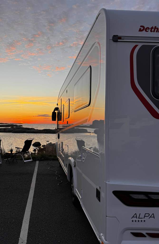 Dagen därpå for vi vidare och bestämde oss för att åka till Fotö. Vi fick en kanonplats vid havet, men denna gången valde vi att ”göra som man ska” och köra in på platsen 🤣. Man kan ju inte vara brottsling jämt 🤪!