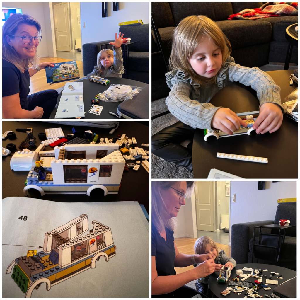 På kvällen satte vi igång med byggande men alltså?! från 5 år? Nja skulle nog säga 8 minst! Pyttesmå bitar och inte helt lätt ens för mig 🤣