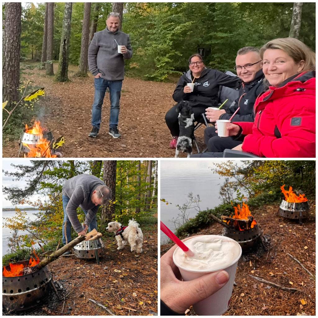 Efter ett tag fick vi besök av Lotta och Peter som var sugna på att testa sin eldstad/grill med fyrkantiga hål, vi skojade lite om det vilken som kom först, alltså vilken som var originalet, och om den som inte var det skulle smälta och visa sig vara en engångsgrill 🤣🤪
