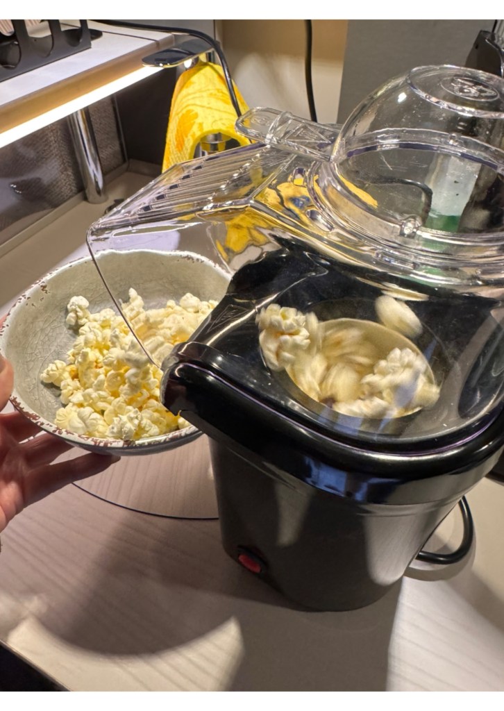 Sen var det dags att testa min födelsedagspresent från Simon – en popcorn maskin 🤩. Jag bara älskar popcorn och saknar det när vi är iväg med husbilen. Har testat både att göra dem i kastrull och airfryer men misslyckats. Nu misslyckas jag inte mer!!! 🥰 Den var superbra!!!