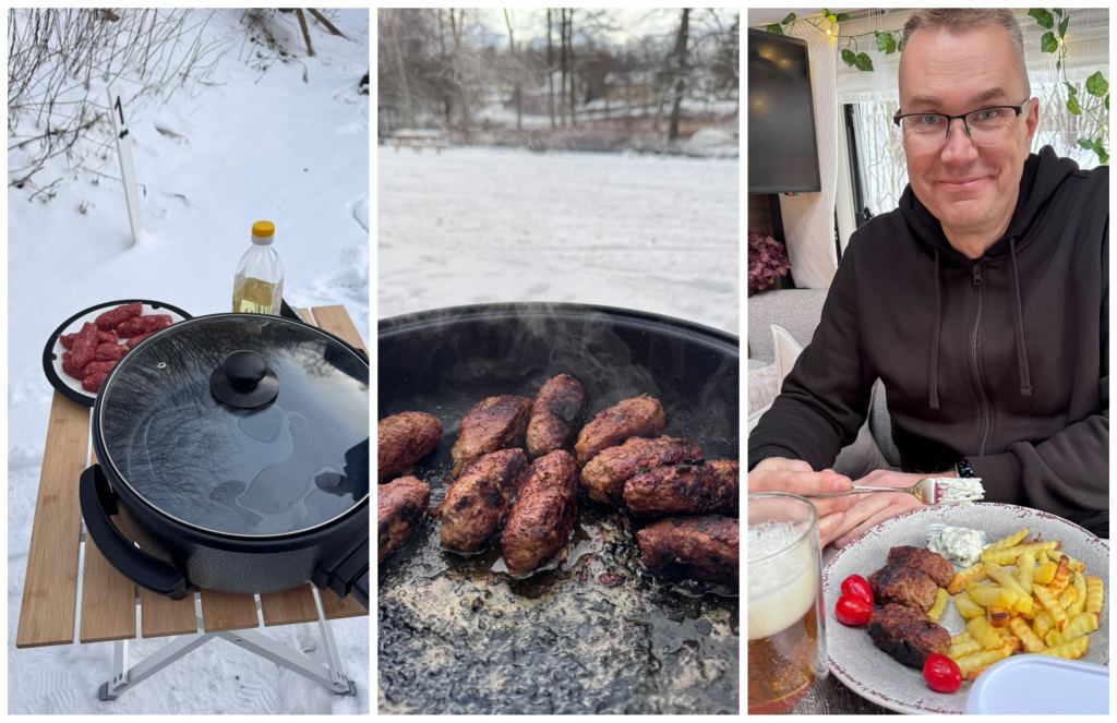 Efter promenaden fixade jag till lite käk, det blev färsspett (utan spett), lite pommes och tzasiki stekta ute så klart 🤩. Den där stekpannan är verkligen fantastisk!!!