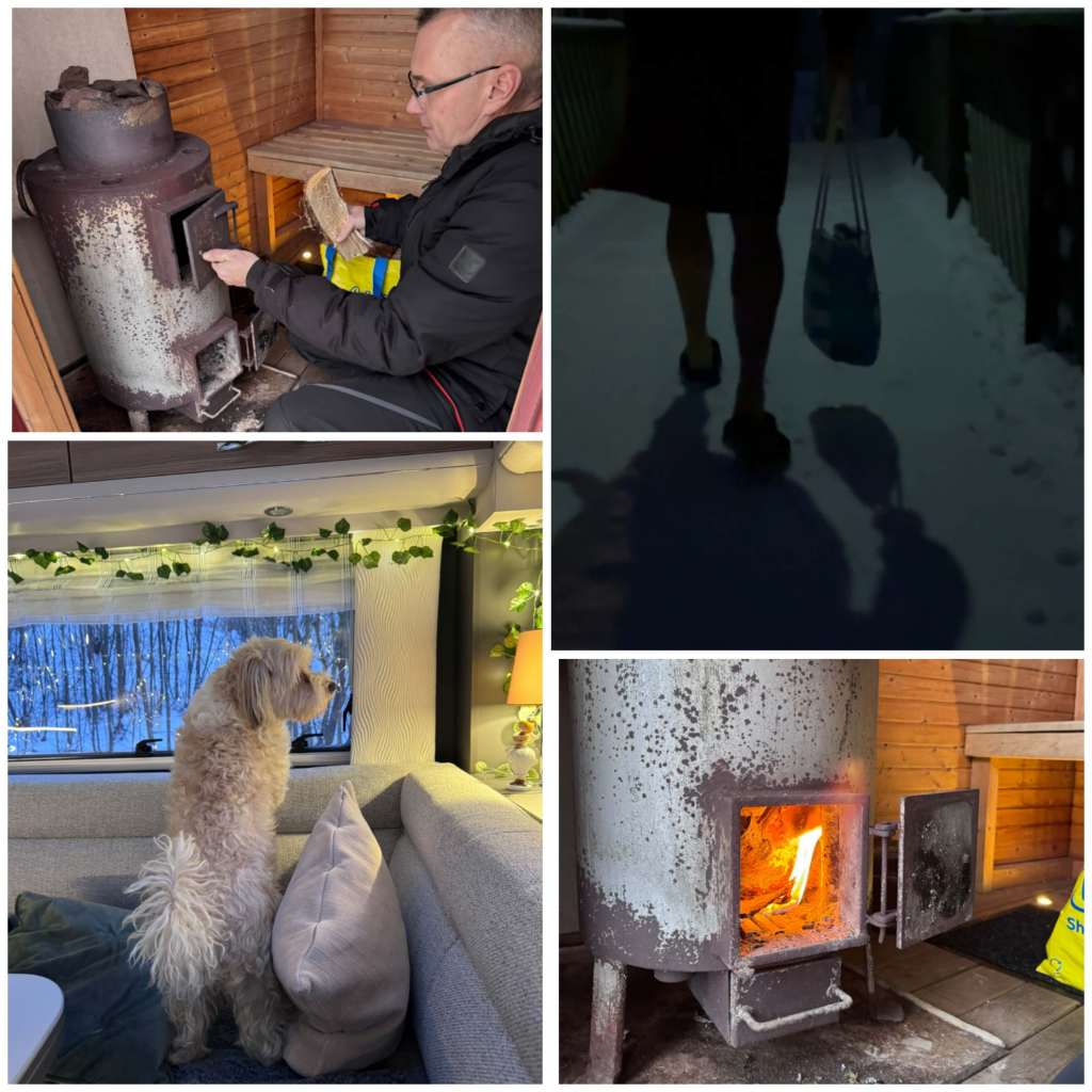 På ställplatsen fanns både bastu, badstege och grillstuga. Vi sa att om vi fick ved över efter bastubadet, så skulle vi använda resten i grillstugan dagen efter!🔥