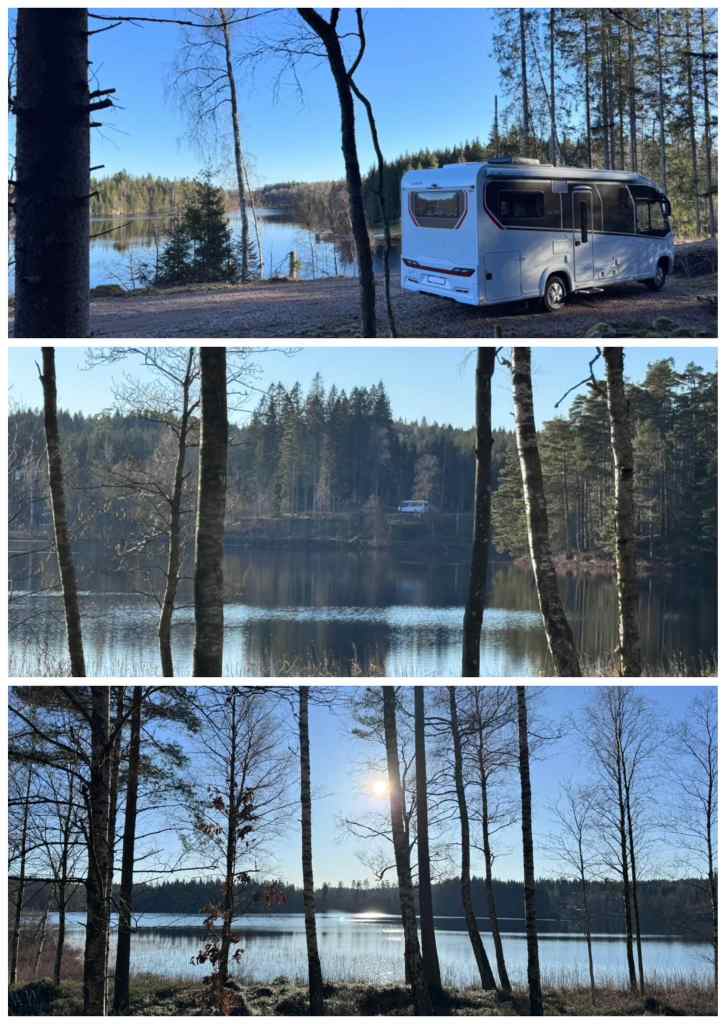 Förra helgen hade vi fått tips om en plats vi den sjö i Östra Frölunda trakten, där vi kunde få komma och ställa oss. De som äger marken har eventuellt plan på att göra den till en Eremitplats eller ställplats 🤩. Sagt och gjort, vi styrde in mot skogen igen.